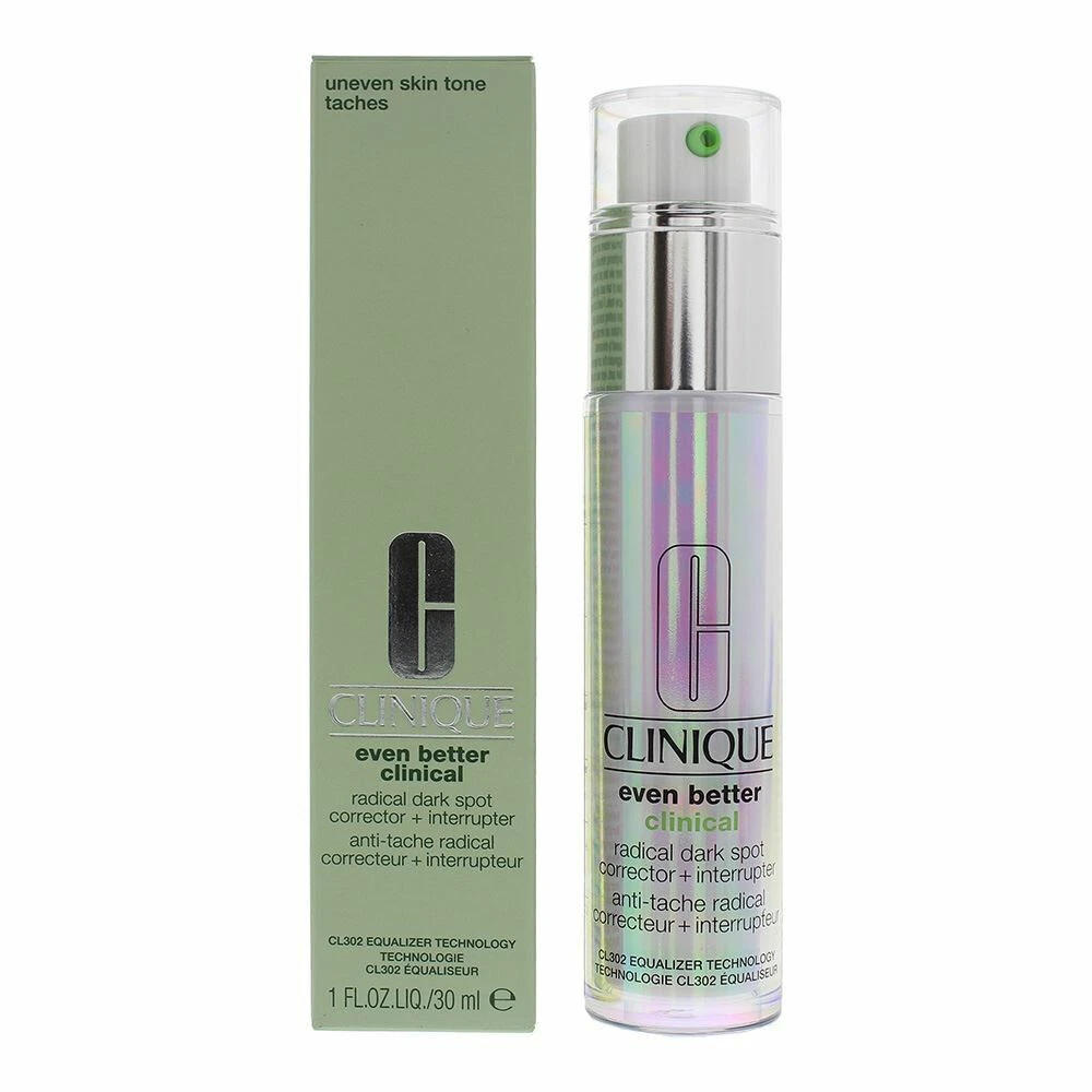 Clinique Even Better Clinical Radical Dark Spot 30 mlHet Even Better Clinical Radical Dark Spot Corrector + Interrupter van Clinique is een krachtig serum dat de zichtbaarheid van donkere plekken, ouderdomsvlekken en acnelittekens vermindert.Krachtig serumVermindert donkere plekken, ouderdomsvlekken en acnelittekens